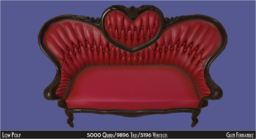 3D model: Antique Victorian Love Seat Sofa Furniture Low-poly